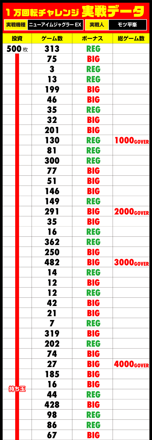 最終的に1万回転までには300G以上も足りず、イマイチな結果を残すモツ平峯であった。