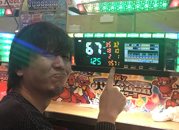 「マイジャグラーⅢ」を実戦機種に決め、ガンガンとレバーを叩いていく!