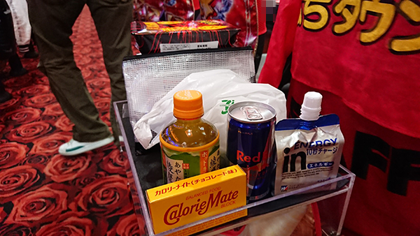 席のすぐ後ろには、食料やエナジードリンクなどを完備。
