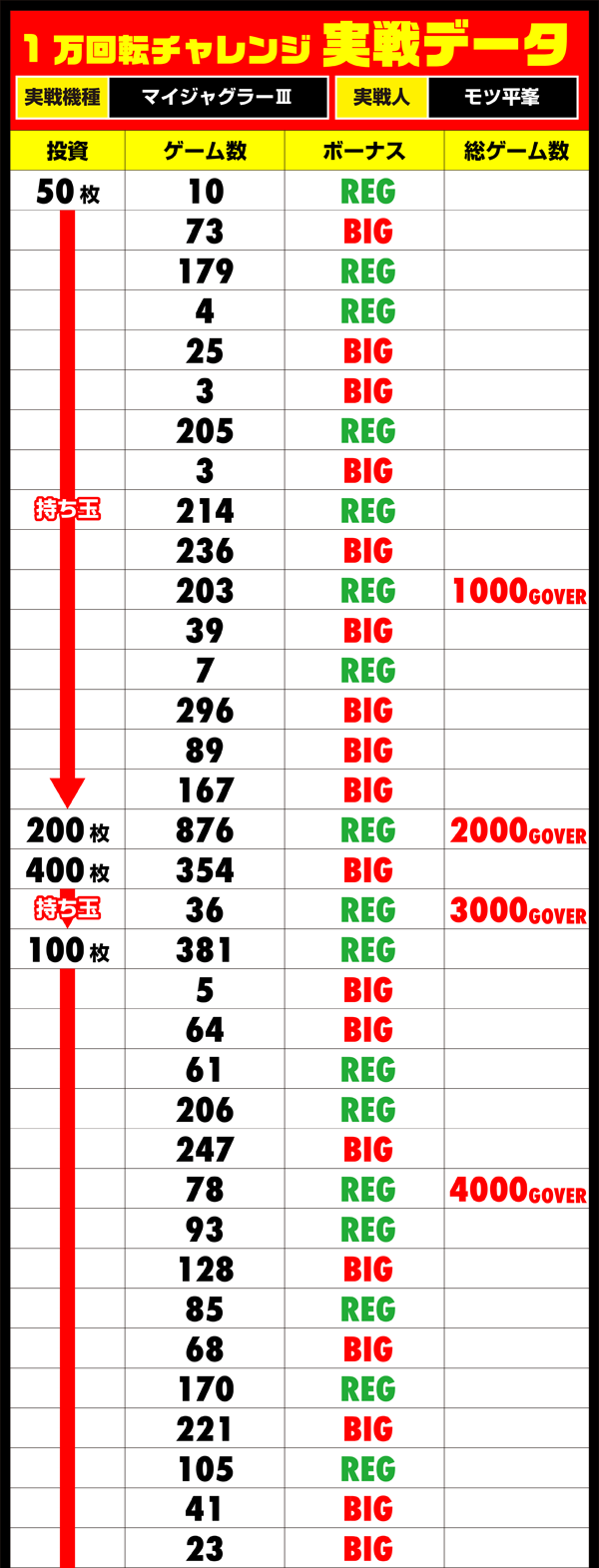 プラスの差枚に意識が向かっていっているようにもみえるが、チャレンジのことも忘れないでいただきたい。