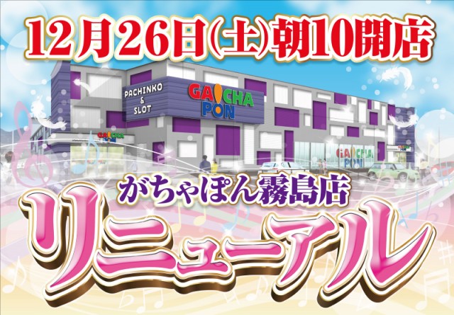 がちゃぽん霧島店!本日★★新台入替★★朝10時開店!