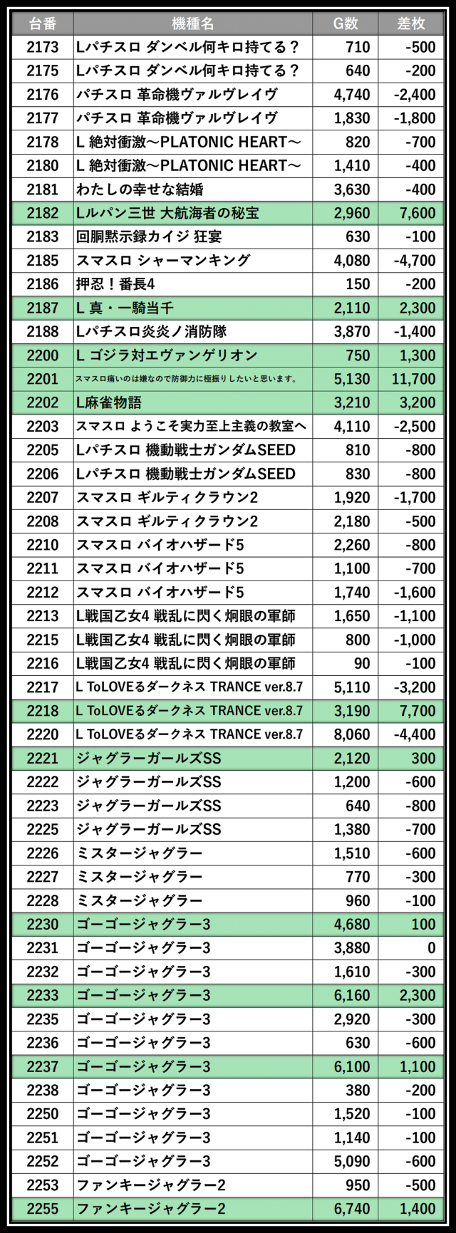 その結果の中から、ぱちタウンが注目すべきポイントを厳選してユーザーにお届け!プレイヤーが楽しんだ一日を下記データにて振り返ってみて欲しい。