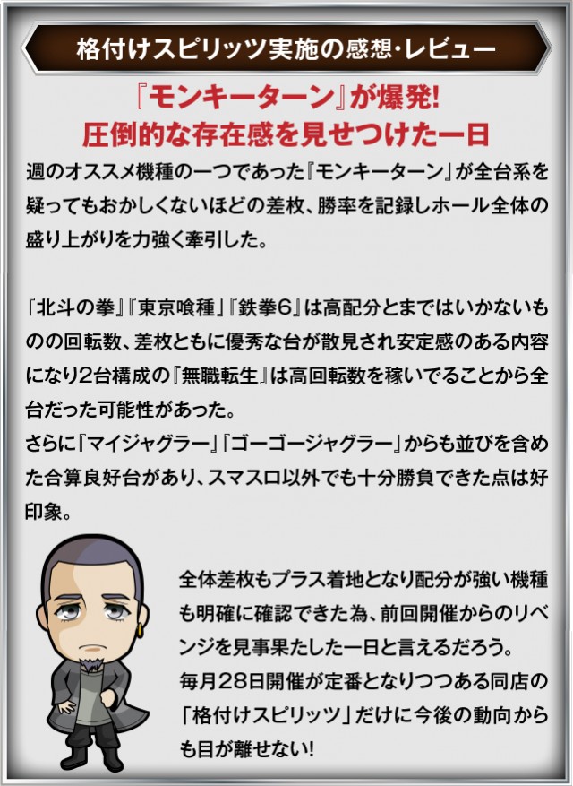 1月28日(水) がちゃぽん霧島店にて、DMMぱちタウンの「格付けスピリッツ」を実施。