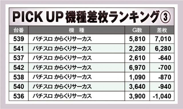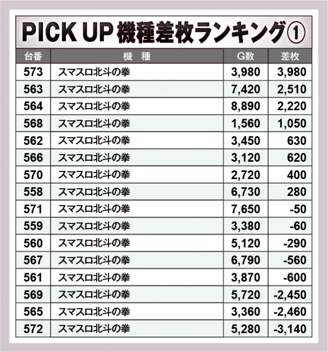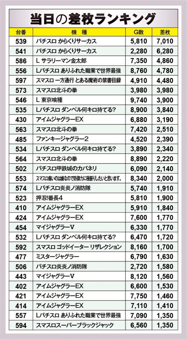 ※差枚数順に掲載しています。