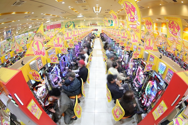 こちらはJR隼人駅から車で約3分足らず、賞品カウンター正面にはカフェもあり440台ものパチンコがズラズラっと並ぶ。