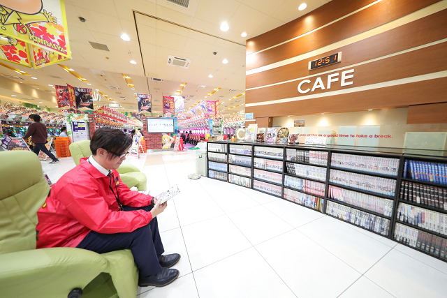 すると、広々とした休憩スペース、ここには漫画本や雑誌、そしてフリーペーパーが豊富に取り揃えられている。