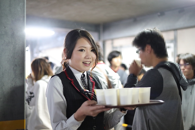 早朝から並ぶファンにお茶のサービス!気が利いてる!