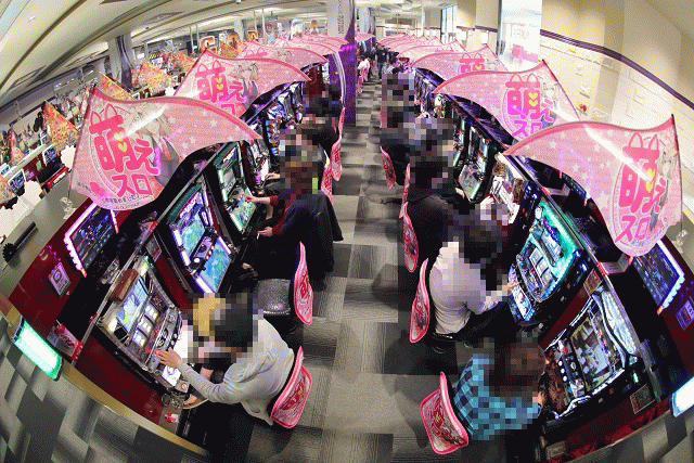 一気に着席するファン、『ゴーゴージャグラー』にするか『ニューアイムジャグラー』にするか迷うファンなどここは個性が出る!