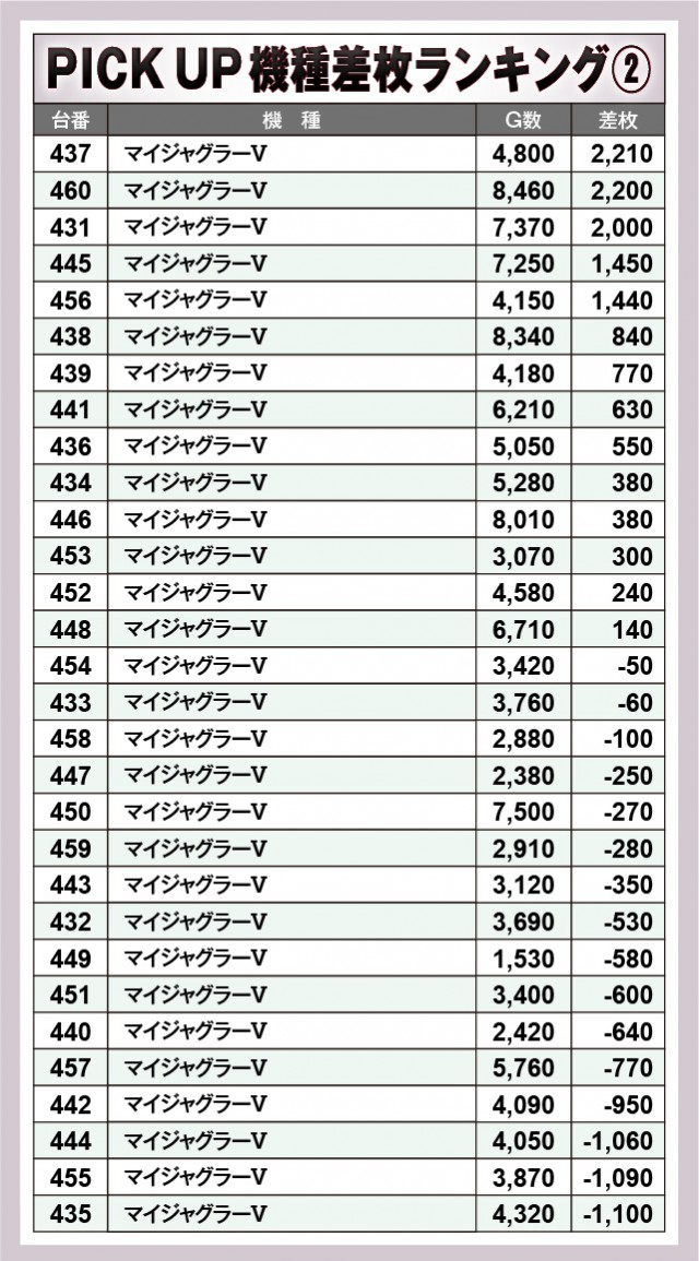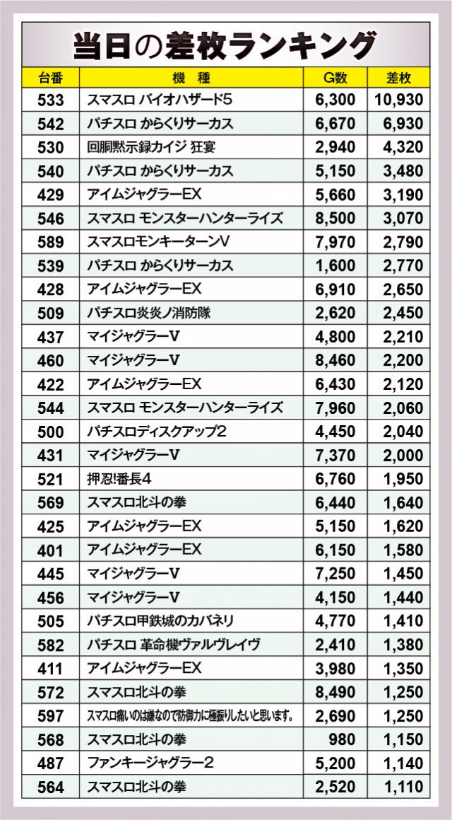 ※差枚数順に掲載しています。