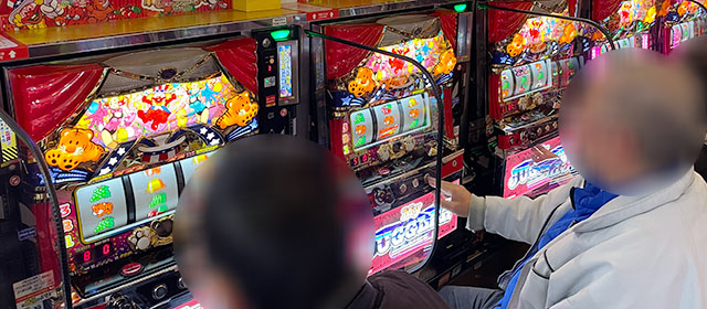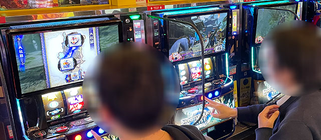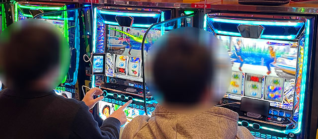 『パチスロ からくりサーカス』『スマスロ モンスターハンターライズ』の両AT機から高い熱気が放たれていた。特に前者は大台突破を果たしており、遊技するファンは相当な手応えを感じたことだろう。そして『マイジャグラーⅤ』は高い活気に満ちており、そのなかで8,000回転台をマークした台が見受けられる。回転数と差枚数が比例する展開を披露し、ボーナス当選のたびにファンは笑顔を覗かせていた。