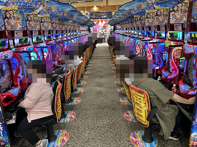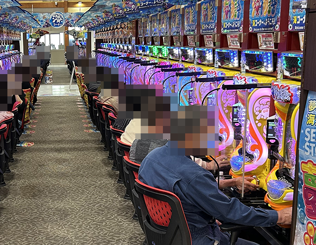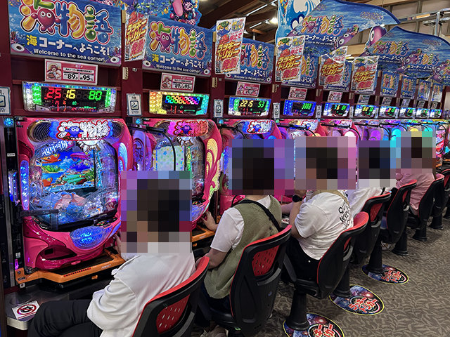 取材時の「PAスーパー海物語IN地中海2」は、5台中4台が埋まるほどに人気。