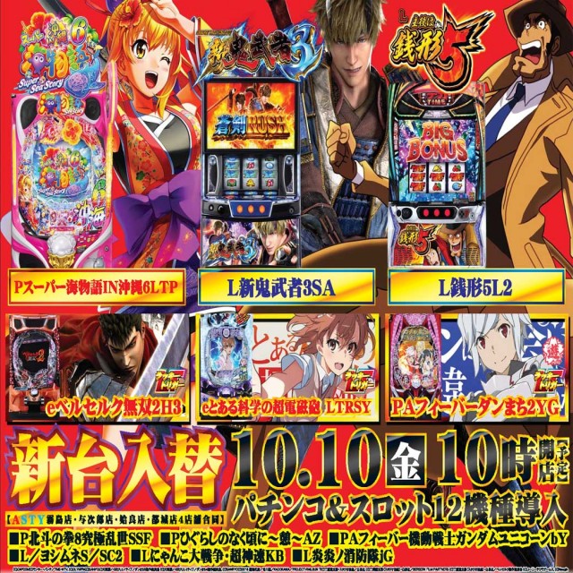2025/10/10♡新台入替♡朝10時開店(予定)♪話題の新機種導入♪
