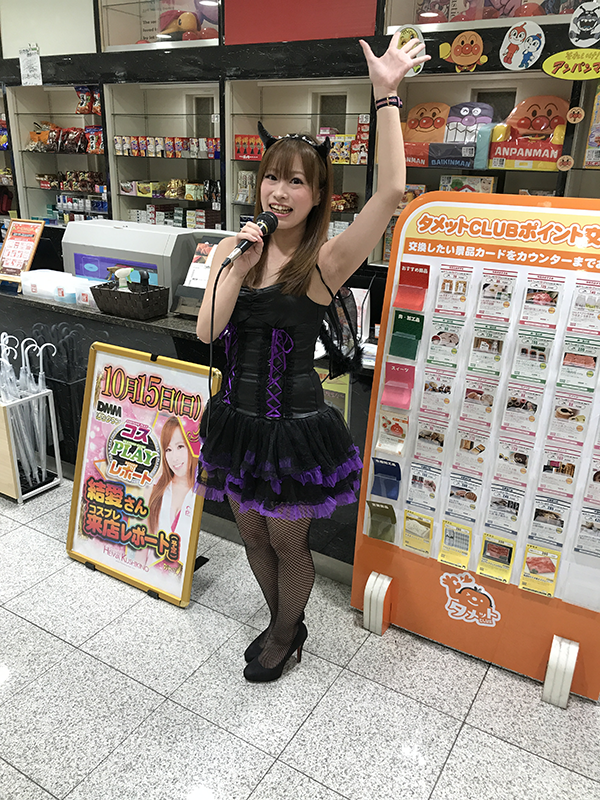 ハロウィンをイメージしたドレスで、可愛い小悪魔に変身! マイクパフォーマンスでのご挨拶もバッチリ決まったね(>∀<)/