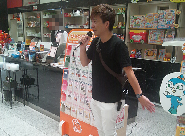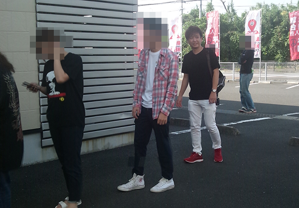 お客様と一緒に整列場所に並ぶモツ平峯さんも