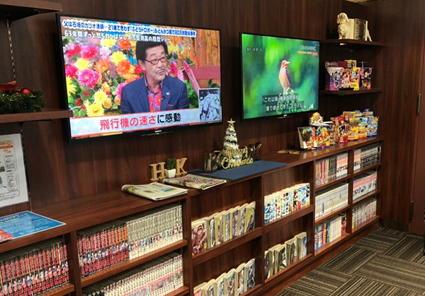 テレビや漫画が用意されているレストスペースも居心地がよく、まいちゃんも気に入っているようでした~。