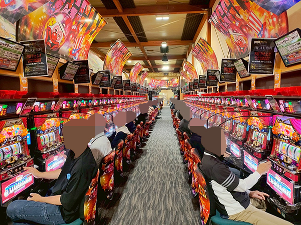 取材時は既に多くのプレイヤーであふれており、パチンコ・パチスロを問わず楽しげな表情でいっぱいだった。