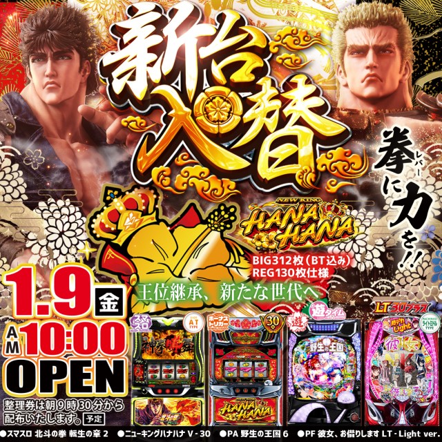 本日新台入替 朝10:00オープン(予定)😍😍