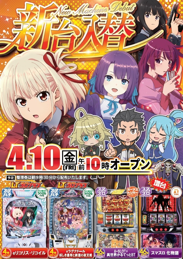 本日新台入替 朝10:00オープン(予定)🌸😁🌸😄🌸
