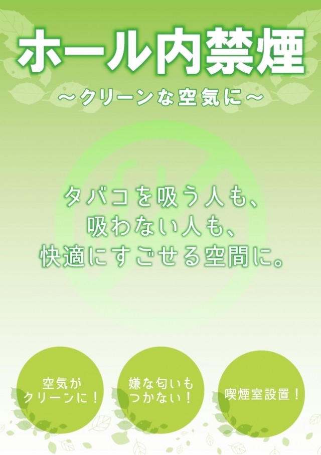 喫煙ブース完備、各台計数機設置、AED設置、休憩室完備、お食事処あります。