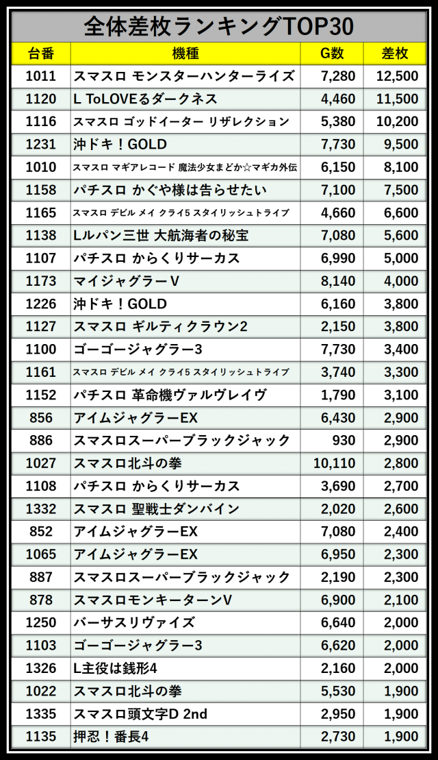 その結果の中から、ぱちタウンが注目すべきポイントを厳選してユーザーにお届け!プレイヤーが楽しんだ一日を下記データにて振り返ってみて欲しい。