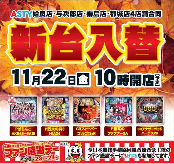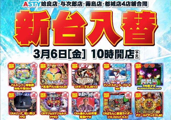 新台入替ASTY姶良店ですご来店心よりお待ち致しております😁