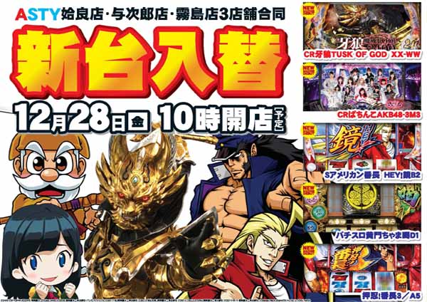 🍀本日🍀新台入替🍀朝10:00オープン(予定)🍀