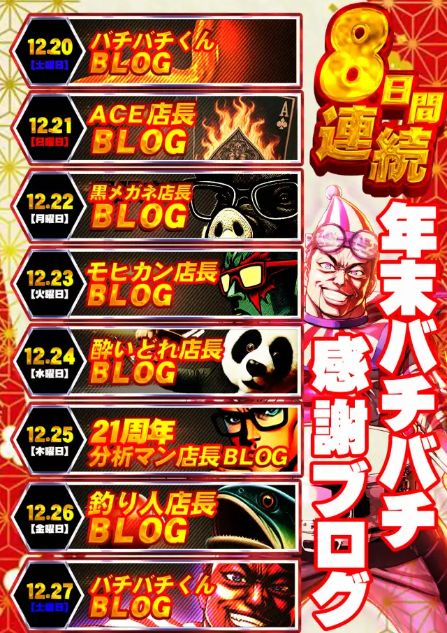 1位 12月20日(土) 2位 12月19日(金) 3位 12月12日(金)