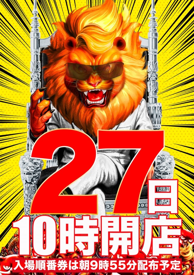 9時55分までに集合されたお客様に入場順番券を配布致します。※入場順番県はおひとり様一枚限りとなります。※順番券の交換、譲渡等は固くお断り致します。紛失により再発行等も致しかねます。 |
