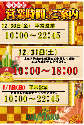 ご愛顧を賜り有難うございました。良いお年をお迎えください😃