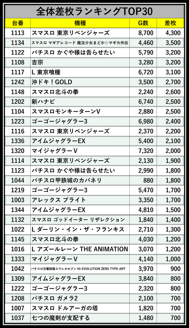 その結果の中から、ぱちタウンが注目すべきポイントを厳選してユーザーにお届け!プレイヤーが楽しんだ一日を下記データにて振り返ってみて欲しい。