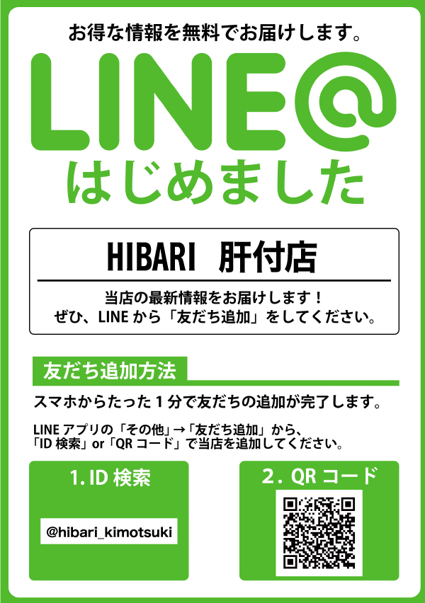 ひばり肝付店♪本日も10時より新規会員募集☆
