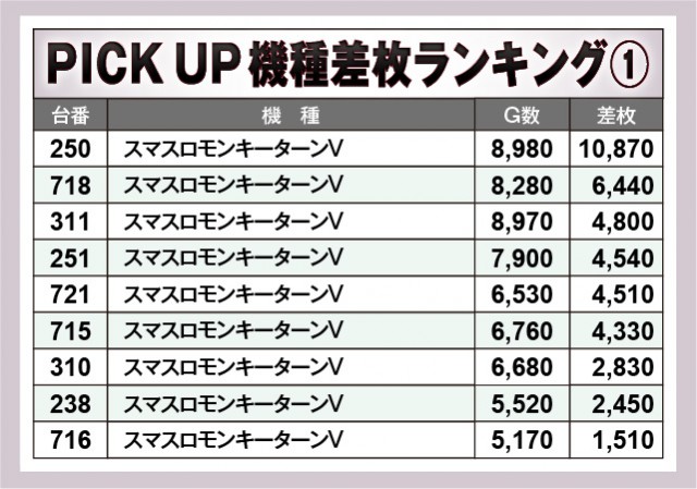 上表に取り上げた機種は、いずれも高い活気と熱気を披露していたのが特徴的だ。万枚OVERが発生したことはもちろん、回転数も高くなっており、右肩上がりに伸びていくグラフを描いていた事実に好感を覚えずにはいられない。名機『スマスロ北斗の拳』はもちろん、『L主役は銭形4』もコンスタントに大当りを重ね、ファンに笑顔をもたらしていた。
