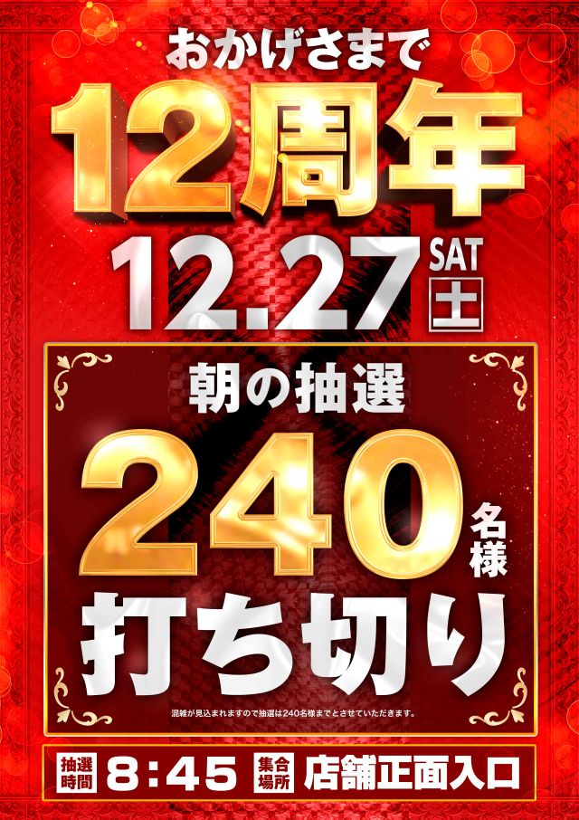 1位 12月27日(土) 2位 12月21日(日) 3位 12月26日(金)