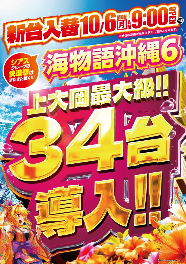 本日大型新台入替!上大岡最大導入!ジアスなら最新台多数導入!