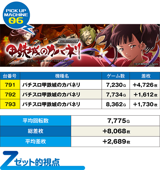 『パチスロ甲鉄城のカバネリ』コーナーでの3台並んでのプラスなど、優秀台並びとしか思えない。だってREAL取材Zの当日なのだから。