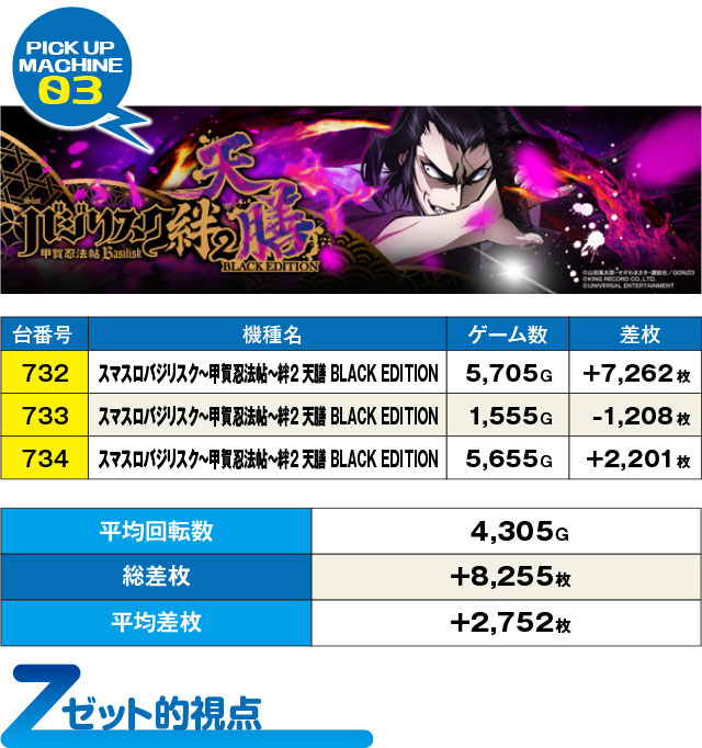 732番台が明らかに優秀台ムーブを見せつけ、+7,000枚オーバーを達成。さらに734番台も+2,000枚超えとなれば、優秀台の3台並びを疑うのがREAL取材Zの日のお約束。それだけにあまり回されてない733番台が無念…。