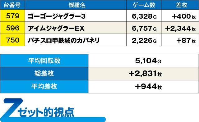 優秀台並びだけに注目するのは大間違い。REAL取材Zの日は、優秀台の並びが多く出現するのがお約束となっているが、単品でも優秀台が存在している。上の3台も優秀台だった…!?