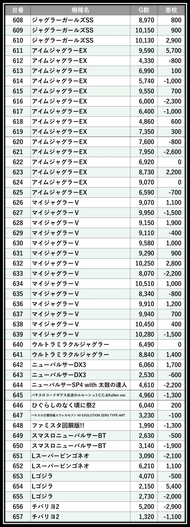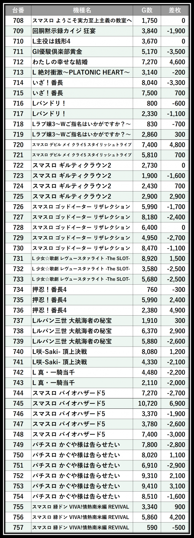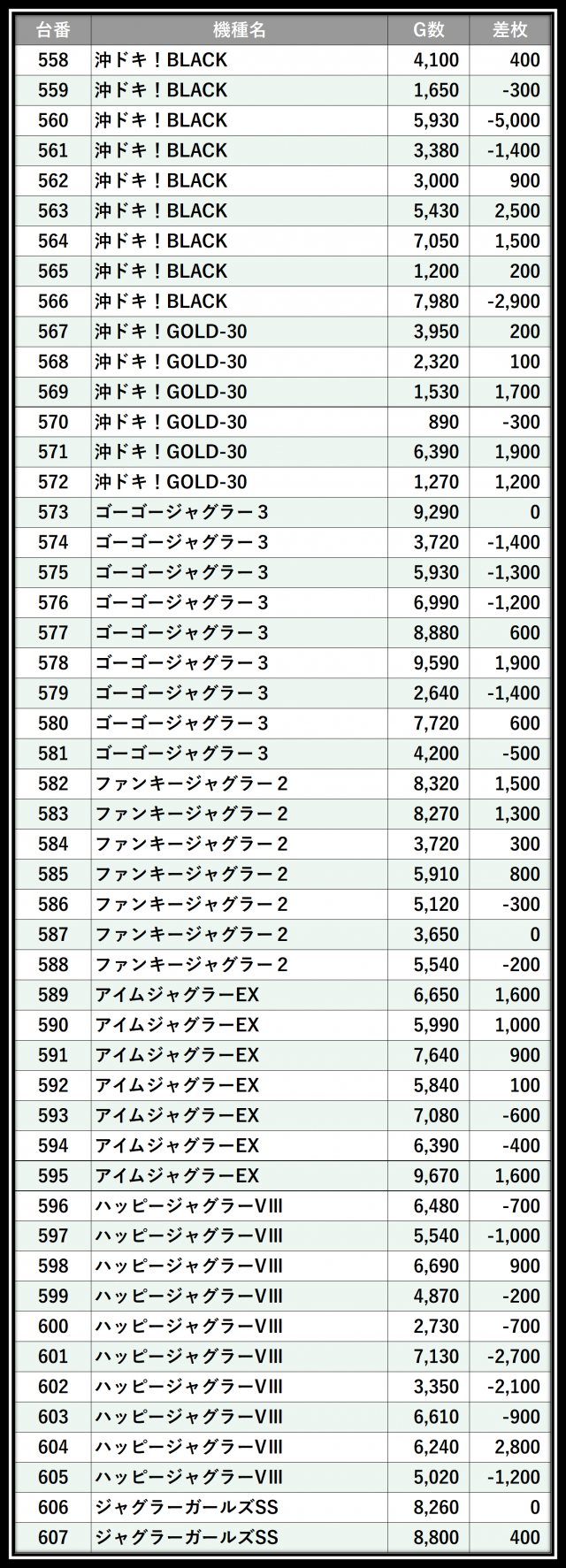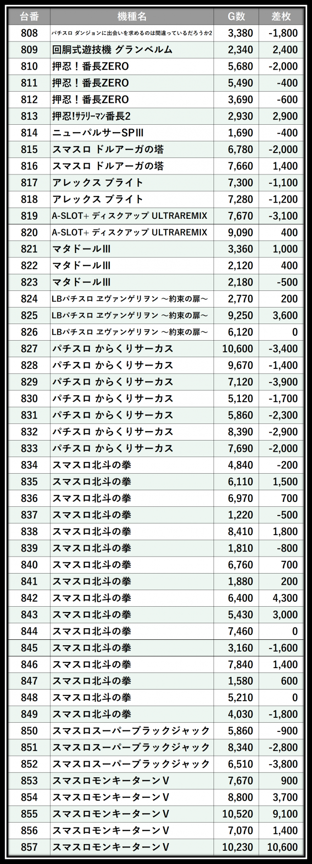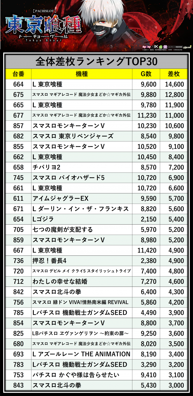 ※差枚数順に掲載しています