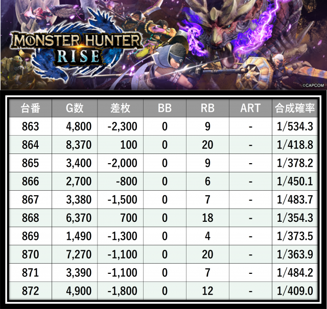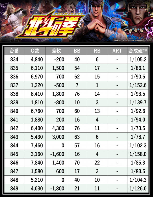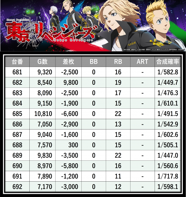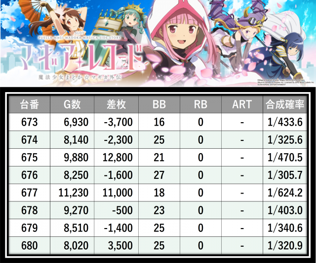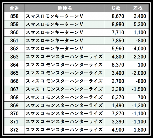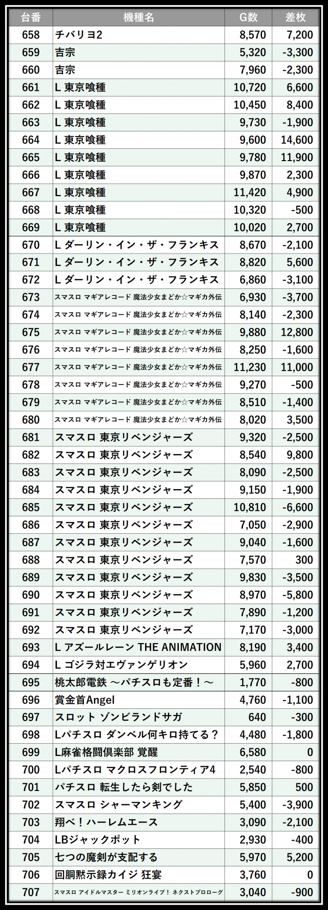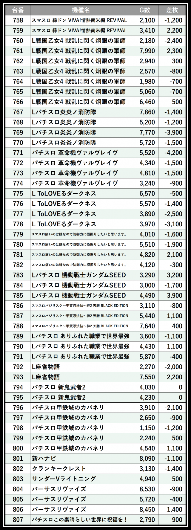 ※差枚数順に掲載しています