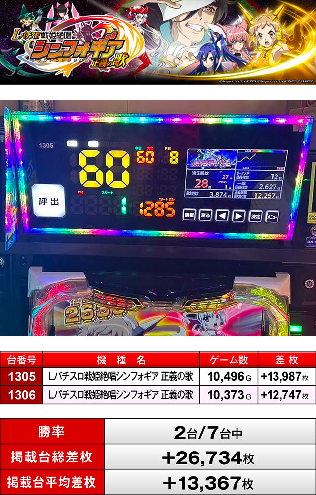 『Lパチスロ戦姫絶唱シンフォギア 正義の歌』からは2台の10,000枚オーバーが誕生!しかも2台並んでの10,000枚超えという奇跡的な光景に、多くのユーザーが驚き、嫉妬したことだろう。