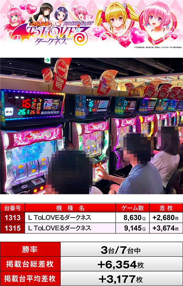 取材班の予想を超えて、しっかり結果を生み出していたのが『L ToLOVEるダークネス』。半数の台がプラスという状況も合わせて、健闘を見せてくれた。
