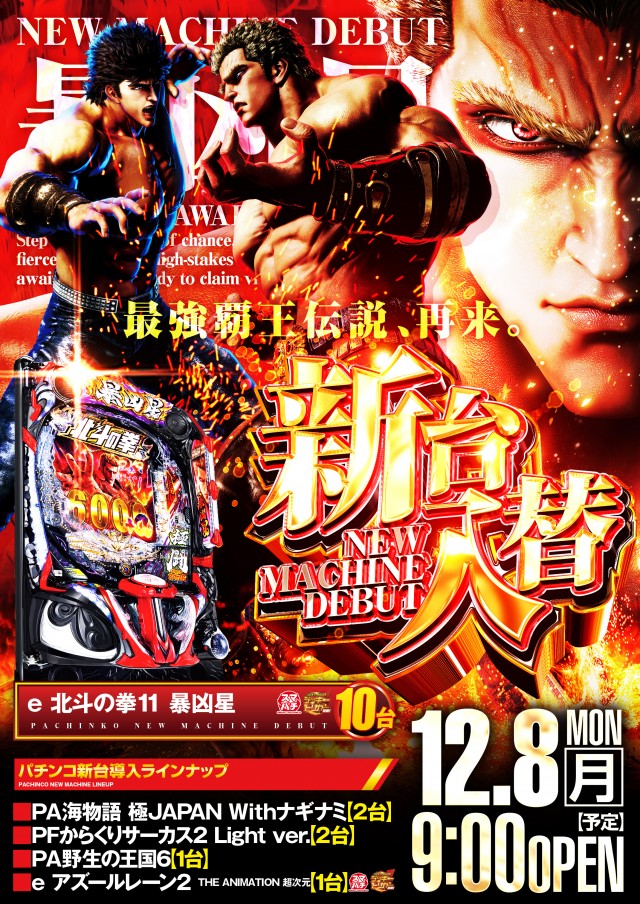 ☆12月8日(月)新台入替☆暴凶星ゾーン誕生!!