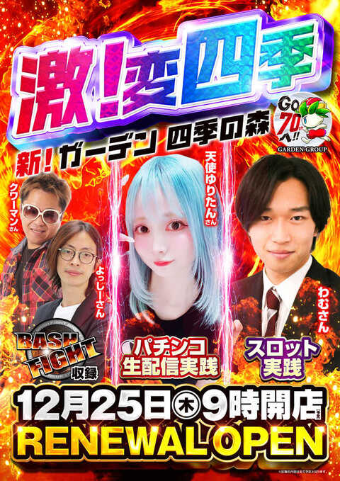 12/25(木)『激変四季リニューアルオープン』全てが激変!