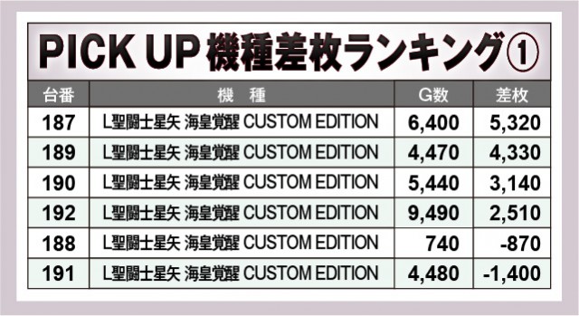 『L聖闘士星矢 海皇覚醒 CUSTOM EDITION』は5,000枚OVERという熱気が見られ、さらに9,000回転OVERと1日中打ち込まれた形跡が鮮烈であるばかり。もちろん『スマスロ北斗の拳』『スマスロモンキーターンV』『L主役は銭形4』『アイムジャグラーEX』も同様で、優秀機種が中心となって盛り上がりを形成していたとも言える。ファンは有意義な時間を過ごしていたのは確かだ。