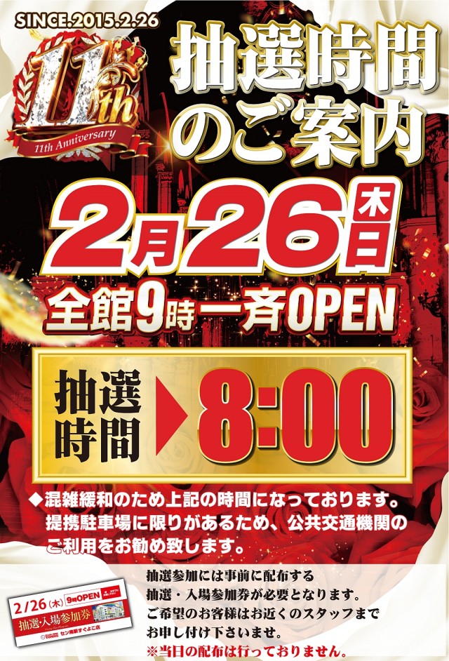 7日前より抽選参加券配布(詳しくは最新情報へ) |