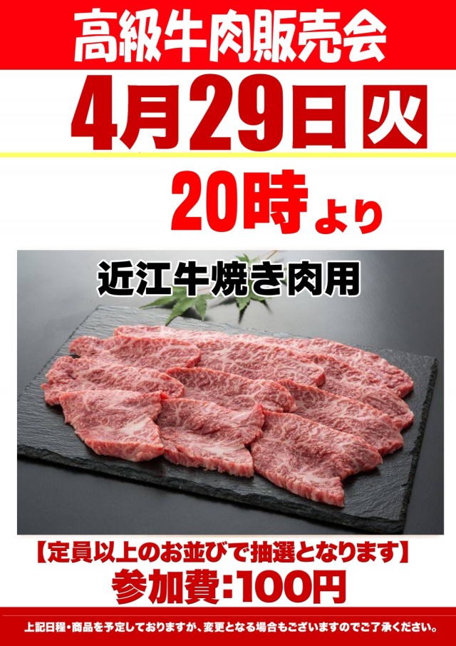 4月29日(火)☆高級牛肉の販売会☆