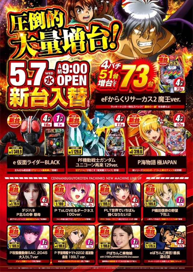 5月7日(水)全館9時オープン!