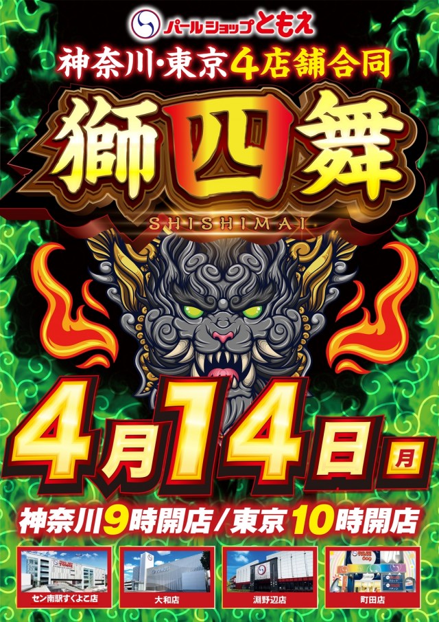 4月14日(月)神奈川・東京4店舗合同9時オープン!!