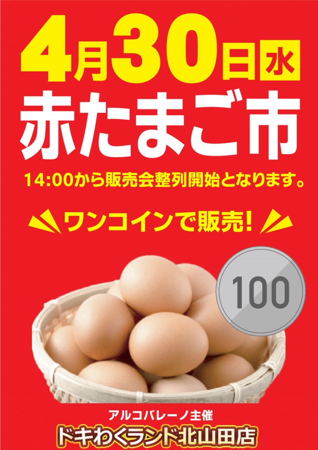 【明日4月30日9時10分開店】ドリスロ開催&赤たまご市開催