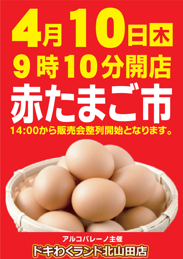 4月10日9:10開店!三井瞳さん来店💥赤たまご市開催🐣
